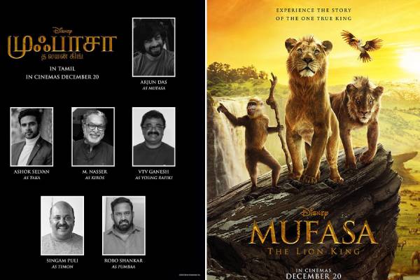 காடுகளின் இறுதி ராஜாவான முஃபாசா: தி லயன் கிங், இப்போது தமிழ்த் திரைப்படத் துறையின் மிகவும் பிரபலமான சில குரல்களுடன் தமிழ் மொழியிலும் உயிர்ப்பிக்கப்பட்டுள்ளதை ஆராய்வதற்கான நேரம் இது! 2019ஆம் ஆண்டின் லைவ்-ஆக்ஷன் திரைப்படமான ‘தி லயன் கிங்’ பிளாக்பஸ்டர் வெற்றியைத் தொடர்ந்து, பிரமிக்க வைக்கும் லைவ்-ஆக்சன் முஃபாசா: தி லயன் கிங் ரசிகர்களுக்கு ஒரு சிறப்பு விருந்தாக வந்துள்ளது. ஏனென்றால், தமிழில் மொழிமாற்றம் செய்யப்பட்ட பதிப்பில் அர்ஜுன் தாஸ் முஃபாசாவாகவும், அசோக் செல்வன் டாக்காவாகவும் நடித்துள்ளனர். ரோபோ சங்கர் மற்றும் சிங்கம் புலியின் பிரியமான ஜோடி முறையே பும்பா மற்றும் டிமோனாக மீண்டும் இணைகிறார்கள், அத்துடன், வி.டி.வி கணேஷ் இளம் ரஃபிக்கியாக வருகிறார். பழம்பெரும் தமிழ் திரைப்பட நடிகர் எம். நாசர் கிரோஸ் அணியில் இணைகிறார்.