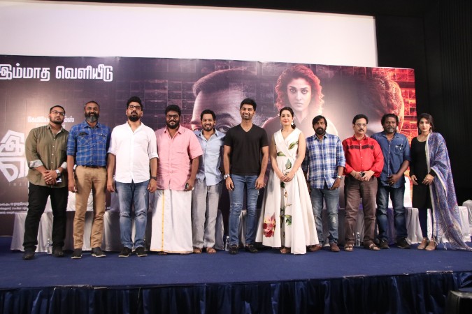 கேமியோ ஃபிலிம்ஸ் சிஜே ஜெயகுமார் தயாரிப்பில், அதர்வா, நயன்தாரா, அனுராக் கஷ்யாப், ராஷி கண்ணா ஆகியோர் நடிக்க மிக பிரமாண்டமாக உருவாகியிருக்கும் எமோஷனல் ஆக்ஷன் திரில்லர் படம் “இமைக்கா நொடிகள்”. டிமாண்டி காலனி என்ற சூப்பர் ஹிட் படத்தை இயக்கிய, இயக்குனர் அஜய் ஞானமுத்து இயக்கியிருக்கும் இந்த படத்தில் விஜய் சேதுபதி சிறப்பு தோற்றத்தில், ஒரு முக்கியமான கதாபாத்திரத்தில் நடித்திருக்கிறார். ஹிப் ஹாப் தமிழா ஆதி இசையமைத்திருக்கும் இந்த படம் வரும் ஆகஸ்ட் 30ஆம் தேதி உலகமெங்கும் வெளியாகிறது. படத்தின் பத்திரிக்கையாளர் சந்திப்பு சென்னையில் நடைபெற்றது. படக்குழுவினர் கலந்து கொண்டு படத்தை பற்றி பேசினர்.