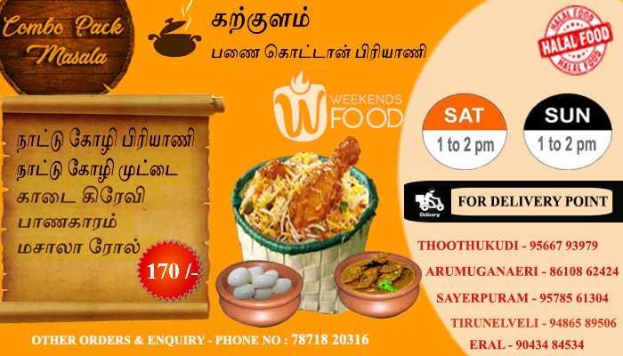 தூத்துக்குடி மாவட்டம் ஸ்ரீவைகுண்டம் ஒன்றியத்திற்கு உட்பட்ட கற்குளம் கிராமத்தில் தனக்கேற்ற கை வண்ணத்தில், மண் வாசனை மாறாமல் உணவுகளை தயார் செய்து வருகிறார் சண்முகநாதன் என்பவர்.