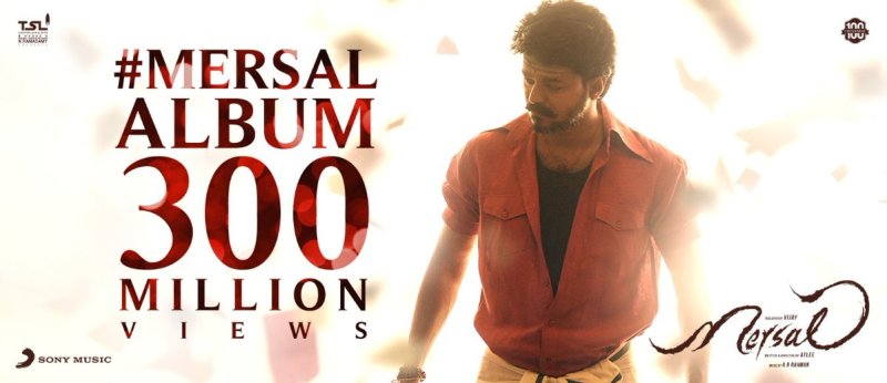 மேலும், ‘மெர்சல்’ இசையுரிமையை வைத்திருக்கும் சோனி நிறுவனம் “’மெர்சல்’ பாடல்கள் அனைத்துமே ஒன்றிணைந்து 30 கோடி பார்வைகளை கடந்து சாதனை புரிந்துள்ளது” என்று அறிவித்துள்ளது.
