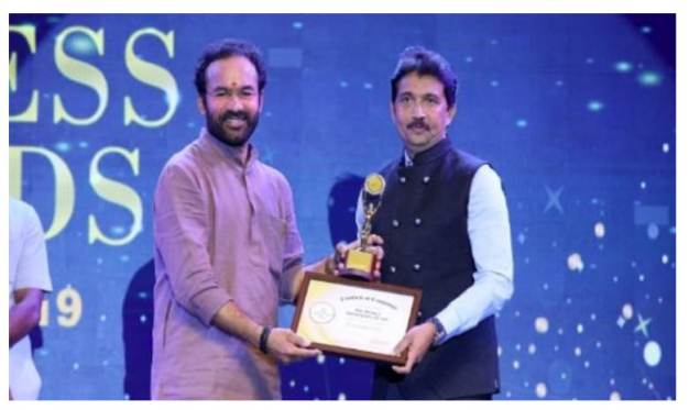MrSiby M Lukose, Chairman and Managing Director ,Siby Mining and Infrastructures Pvt. Ltd.receives the Times Of India award from Hon’ Union Minister for State,MrKishen Reddy, for the Best excavation services company
