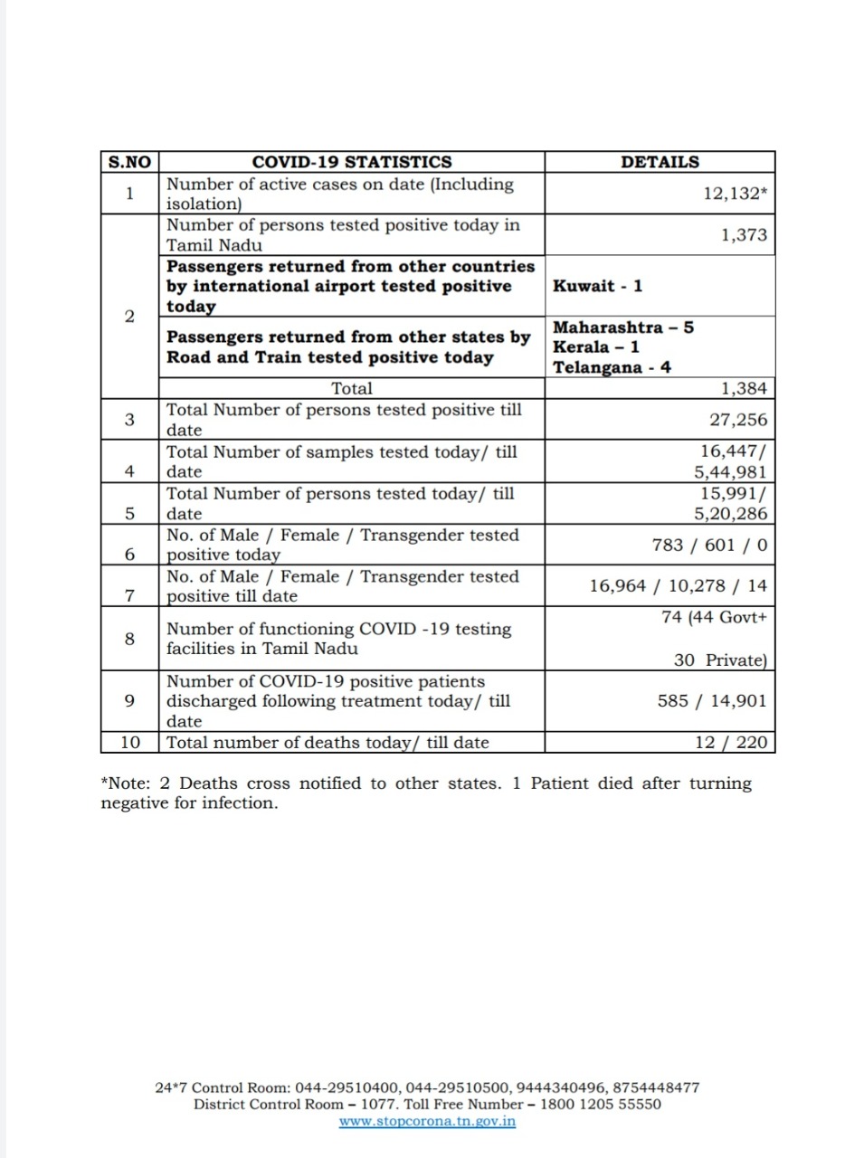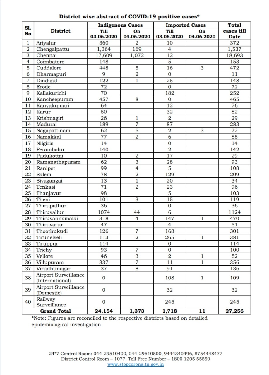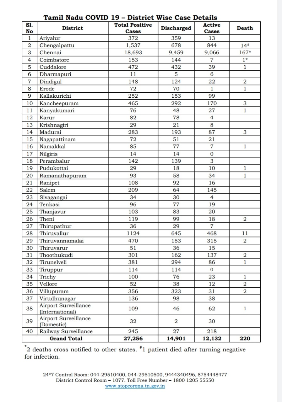 தமிழகத்தில் இதுவரை 27256 பேர் கொரோனாவால் பாதிக்கப்பட்டுள்ளனர்.